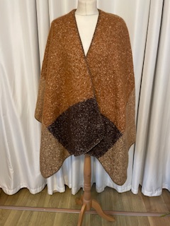 Cape in block design brown So soft and comfy And very warm too Would fit from size 10-18